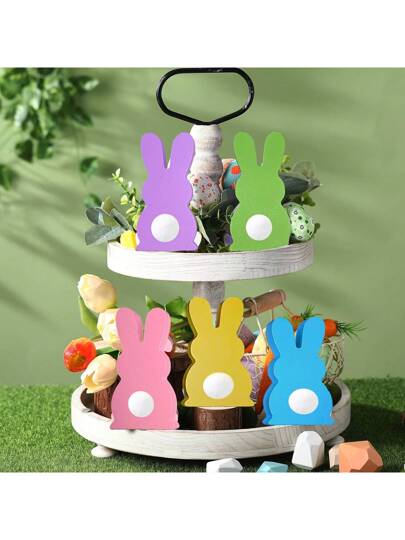 10入組復活節多色兔子木牌,復活節層架裝飾套裝,鄉村風格木質桌牌,春季桌面裝飾品,適用於家居農舍裝飾 - 彩色 - 查看 5