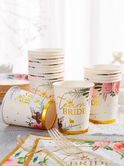 10入組花和標語圖案一次性杯子 - 彩色 - 查看 1