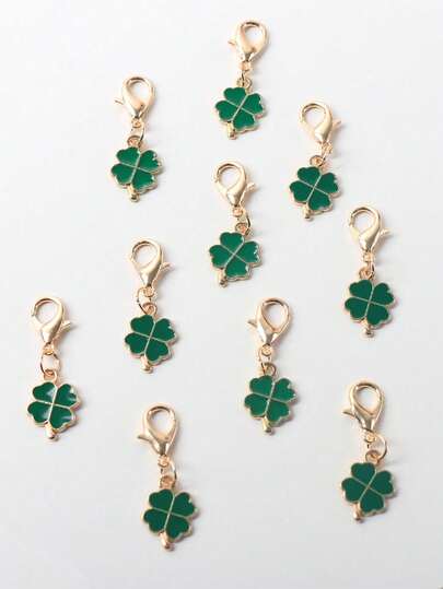 10个四叶草绿色钥匙扣,圣帕特里克节挂扣,可挂在钥匙、鞋子、背包上,幸运四叶草,适合日常佩戴 - 綠色 - 查看 1
