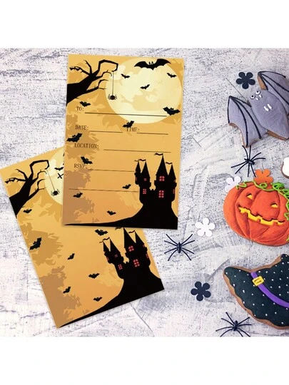 10入組萬聖節派對蝙蝠形狀的邀請卡,用於萬聖節晚餐 - 黃色 - 查看 1