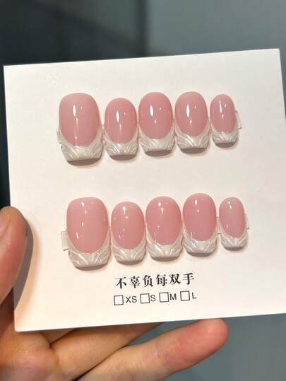 10片装手工可佩戴美甲贴纸,女士全覆盖美甲贴,可重复使用,方形,中号,法式粉色,手工美甲,适合女孩和通勤女性,简约美甲,珍珠/极光/激光效果,珍珠光泽,法式丝绸质感,法式设计,亮面美甲,高端极简度假风,可爱性感少女美甲,适合女性和女孩日常及派对佩戴,按压式美甲,长指甲用品。 - 彩色 - 查看 6