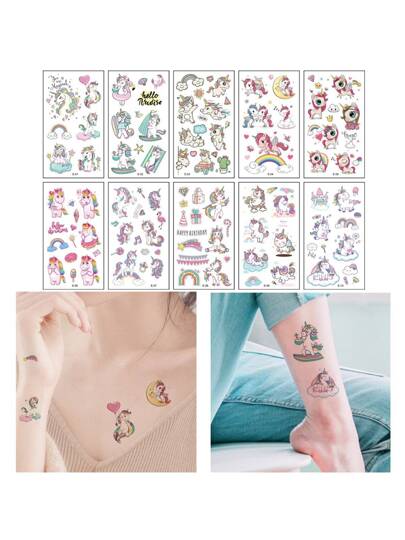 10入組孩子們卡通臨時紋身貼貼紙,可愛禮品標籤 - 黃色 - 查看 1