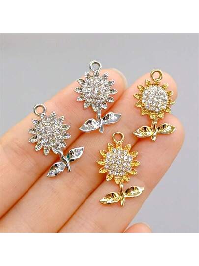 10 件豪华合金水钻向日葵吊坠,DIY 珠宝配件,适用于手链、项链、耳环、钥匙扣 - 彩色 - 查看 1