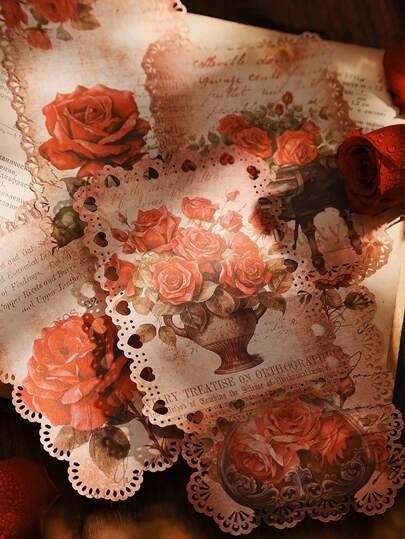 10入組復古中空玫瑰花蕾結紙張,適用於手作書信、剪貼簿背景裝飾和手寫留言用紙