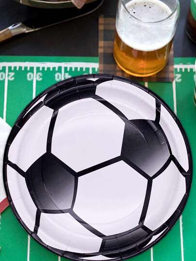 10入組紙質一次性盤子現代足球圖案派對用一次性盤子 - 黑色 - 查看 4