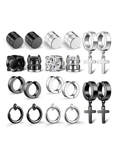 10 件/套不锈钢夹式吊坠环形耳环,非穿孔耳钉男女通用耳环套装 - 彩色 - 查看 1