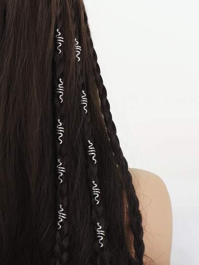 10入組蛇設計電話線髮圈 - 銀色 - 查看 4