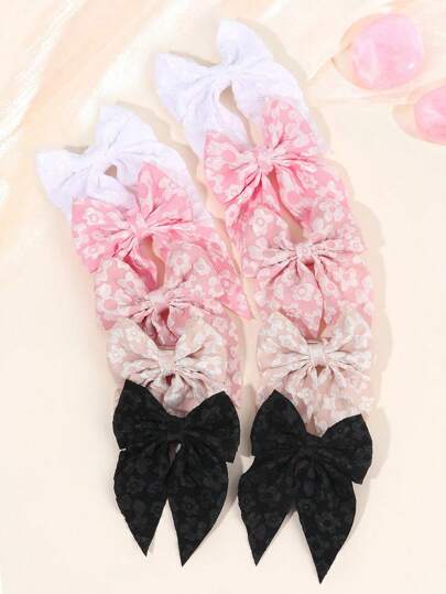 10 件装纯色发饰,适合幼儿女孩花朵图案蝴蝶结发夹,带尾巴,粉色白色蝴蝶结发夹,黑色发夹,女孩节日派对头饰,儿童婴儿发饰 - 彩色 - 查看 6