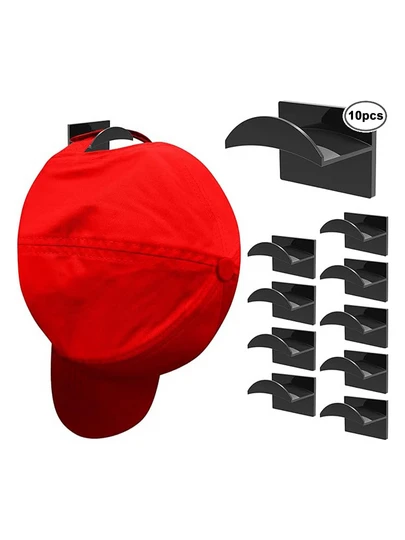 10入組強力黏貼式牆壁帽掛勾,極簡設計免鑽孔棒球帽掛勾,適用於牆壁、門、壁櫥、辦公室和臥室 - 黑色 - 查看 1