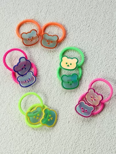 10入組小女童熊頭部裝飾髮圈 - 彩色 - 查看 1