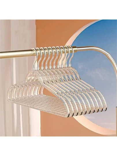 10入組/套PP衣架,現代銀色透明亮片家用防滑衣架 - 銀色 - 查看 1