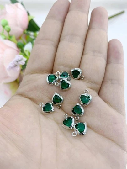 10入組/套時尚玻璃水鑽裝飾心DIY吊墜適合女士適用於珠寶製作 - 墨綠色 - 查看 1