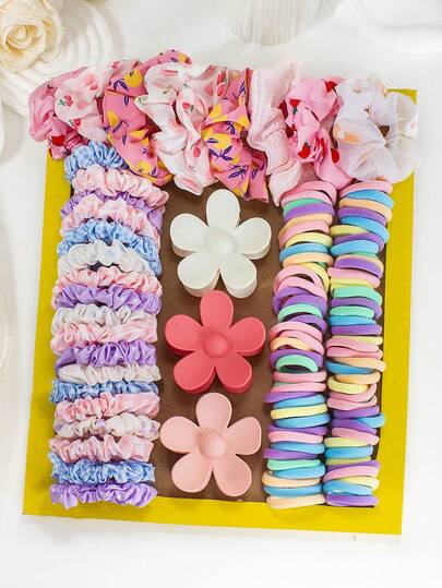 117件套多彩阳光女孩发饰套装,包含发带、大号爪夹、发圈和发环 - 适合女孩和女士,满足您通勤、约会、派对和度假等各种场合的发型需求,让您成为时尚焦点 - 2025年新款设计,发饰,礼物,发带,发圈 - 彩色 - 查看 2