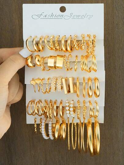 12-60 件银质女士耳环套装 - 优雅仿珍珠耳环,适合日常佩戴、办公室时尚和特殊场合 - 金黃色 - 查看 1