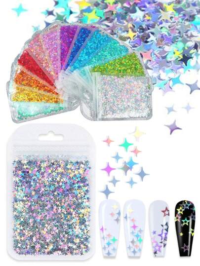 12包/1組 Diy 雷射四角星美甲亮片,diy 珠寶配飾,填充水晶膠亮片 - 彩色 - 查看 14