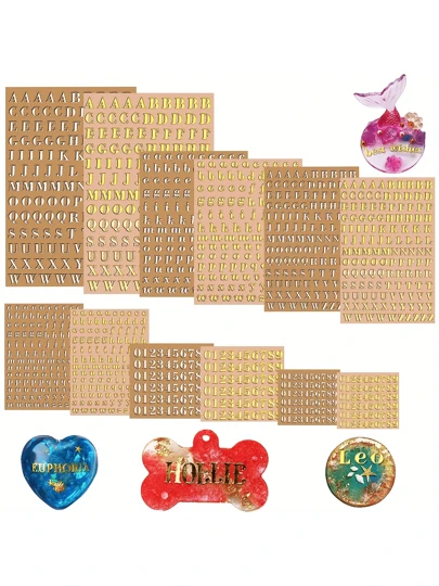 12 张树脂字母贴纸,剪贴簿小字母贴纸,金属字母数字贴纸,自粘,金色和银色,3 毫米和 4.5 毫米高 - 彩色 - 查看 1