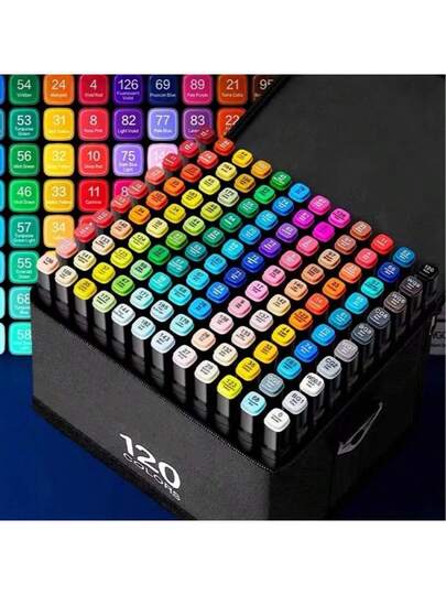 120 色双头马克笔、荧光笔、永久性马克笔、绘图笔,适用于素描、动漫绘画、办公用品,非常适合圣诞节和生日礼物 - 彩色 - 查看 1