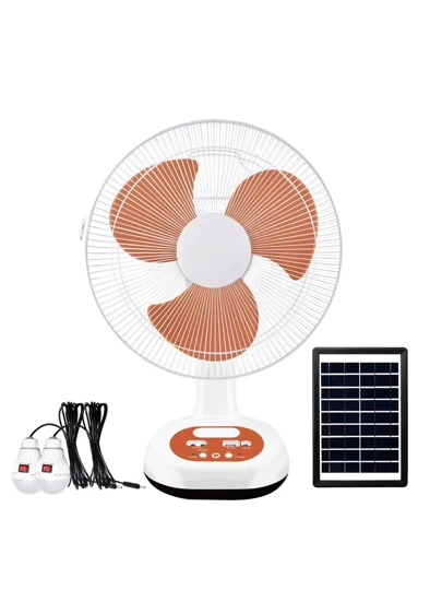 12In Solar Rechargeable Table Fan Cell Phone Charger Electric Table Fan With Light And Power Bank Function, Portable, Desktop, Rechargeable, Solar - 橘色 - 查看 1
