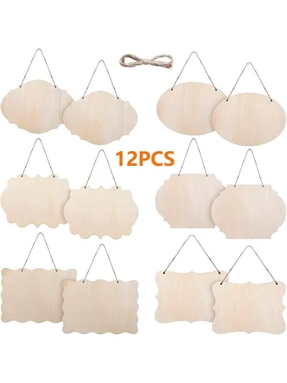 12件套带绳木制圆片套装 - DIY创意工艺材料,空白木板 - 木制装饰品和模型套件 - 激光切割/热压雕刻 - 送给亲朋好友的完美礼物 - 杏色 - 查看 6