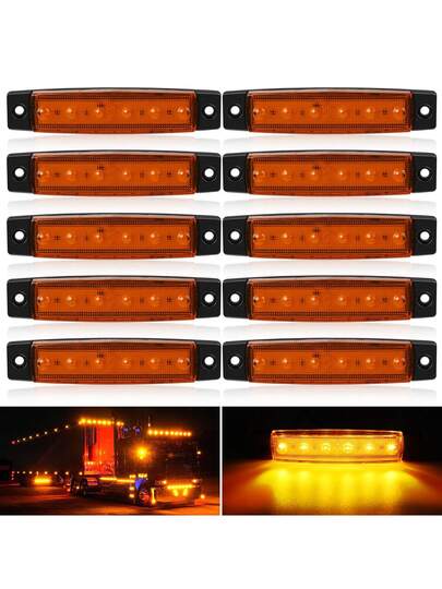 12V-24V 10 件装 LED 前后侧指示灯 LED 灯指示灯 适用于汽车卡车货车巴士 - 白色/红色/琥珀色/蓝色/绿色 - 均碼 - 查看 12