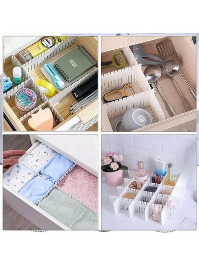 12 件/8 件/4 件/2 件/1 件可调节可拆卸塑料抽屉分隔整理格,适用于内衣、袜子、化妆品、文具存放在办公室、宿舍、家里 - 多功能隔断配件 - 彩色 - 查看 6