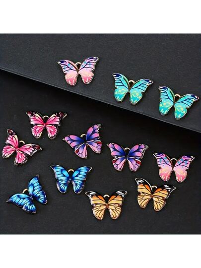 12入組彩色蝴蝶吊墜珐琅金屬小吊墜,項鍊手鍊diy珠寶製作配件 - 彩色 - 查看 1
