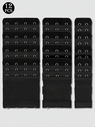 12 件弹性胸罩延长带,配有 2/3/4 个挂钩,可调节且舒适 - 黑色 - 查看 1