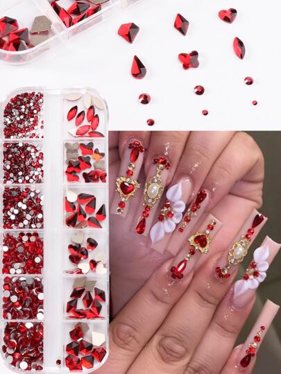 12颗红色水晶美甲水钻,混合扁平闪亮宝石美甲装饰DIY美甲设计美甲饰品美甲用品