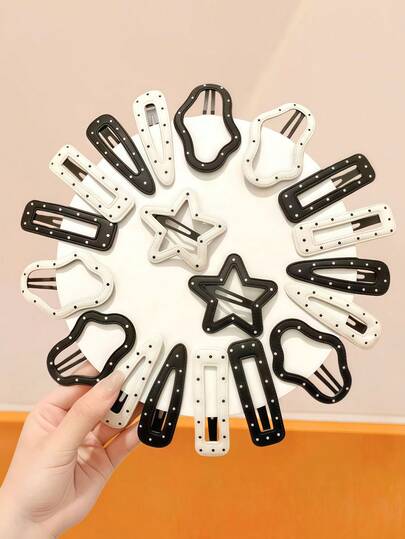 12件套黑白波点极简时尚发夹组合,星形、方形、波浪形款式 - 适合女孩和女士,打造酷炫前卫的风格。适合休闲、工作和户外造型。轻巧便携,可用于造型。发夹、发卡、发饰、头饰、女士发饰 - 彩色 - 查看 14