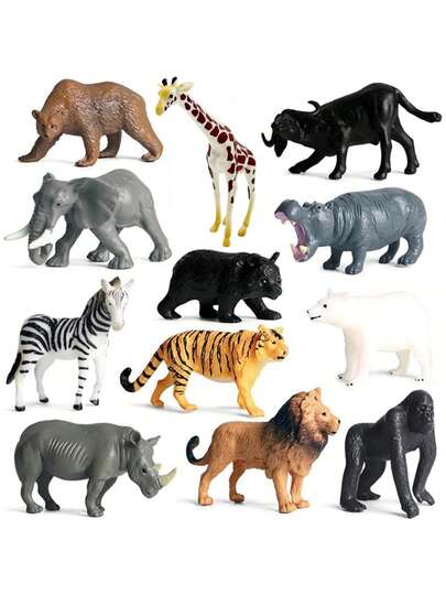 12件套手绘野生动物模型玩具,逼真丛林动物园迷你动物模型 - 长颈鹿、黑熊、狮子、老虎、棕熊、北极熊、猩猩、大象、水牛、河马、犀牛、斑马 - 完美的纸杯蛋糕装饰玩具套装,生日/圣诞节装饰/毕业典礼/宰牲节/开斋节礼物派对用品 - 彩色 - 查看 1