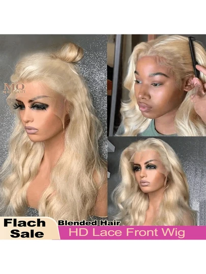 13x4蕾丝前假发,无胶真人发混纺,高清透明蕾丝,200%密度,自然波浪卷发,带婴儿发,预先拔毛,女士前额假发,30英寸自然发际线(613金色-自然波浪卷) - S/613 - 查看 2