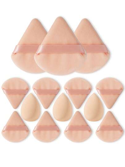 14件套化妆工具套装,包括:3个化妆海绵+11个三角粉扑 - 杏色 - 查看 5