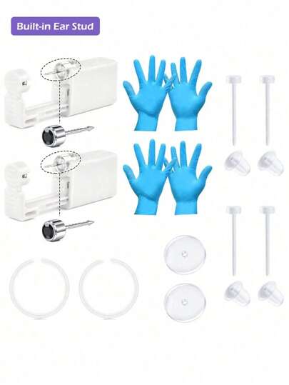 14 件套耳洞穿刺套装耳洞穿刺枪套装自穿刺耳环穿刺套装耳环枪穿刺套装银色带耳环耳钉自穿刺枪家用耳洞穿刺套装一次性情人节礼物,适合女性、妈妈、母亲、母亲节、礼物 - 彩色 - 查看 1
