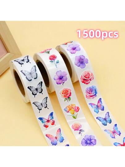 1500 张蝴蝶花手提包贴纸 DIY 行李箱笔记本花贴纸信封封口贴纸 - 彩色 - 查看 1
