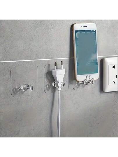 15 个透明墙钩,用于电源插头,休闲塑料自粘式无钻无痕电缆管理挂钩,抛光壁挂式,易于安装实用整理器 - 适合家庭和办公室! - 彩色 - 查看 6
