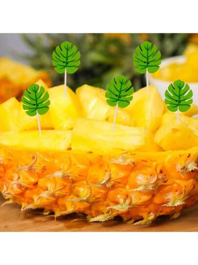 15支热带龟背竹叶造型水果签,精美绿色叶子牙签,4.7英寸竹制食品签,适合夏威夷派对
