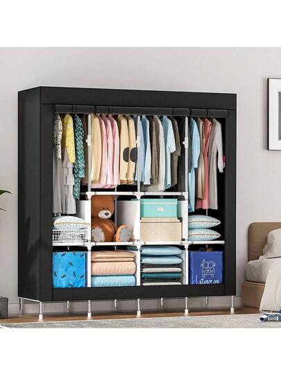 170*170 Closet Buildable Wardrobe Rack Wardrobe Bedroom Organization - 黑色 - 查看 1