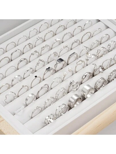 17KM 69 件简约蝴蝶、心形和人造珍珠戒指套装,适合女士,适合度假、约会、礼物和日常佩戴(无盒)情人节、妈妈、母亲、母亲节、礼物 - 銀色 - 查看 1