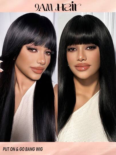 180%密度直髮帶刘海人髮假髮18英寸自然黑色蘭米頂部全機製造女士日常使用假髮 - Natural Black - 查看 1