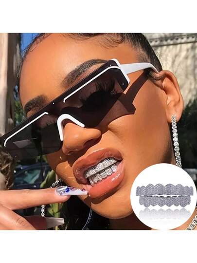 18k鍍金鍍金完成8個上排齒8個下排齒嘻哈口腔護齒,男女適用 - 銀色 - 查看 8