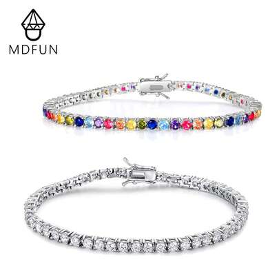 18K白金镀层2件套3毫米白色和彩色立方氧化锆网球手链套装,女士日常时尚首饰