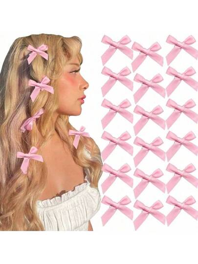 18PCS Pink Hair Bows For Women Hair Ribbon For Hair Small Hair Bows Clips Small Satin Hair Clips Mini Bows Hair Barrettes Hair Accessories For Women Girls Claw Clips, School Stuff