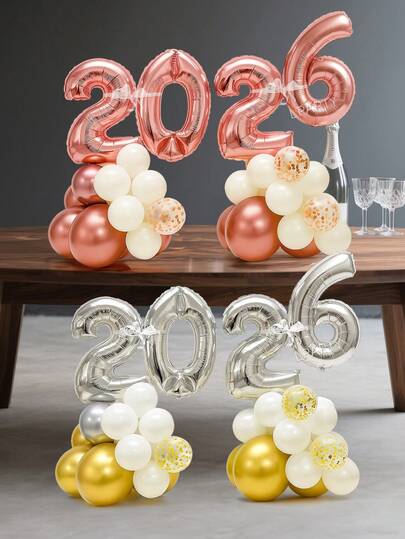 18 个/套新年派对装饰气球,16 英寸银色“2026”和玫瑰金“2026”铝箔气球,12 英寸金色和玫瑰金亮片乳胶气球,10 英寸金色、白色、玫瑰金乳胶气球,适用于圣诞节、新年、除夕夜、桌面、房间装饰、摄影道具 - 彩色 - 查看 11