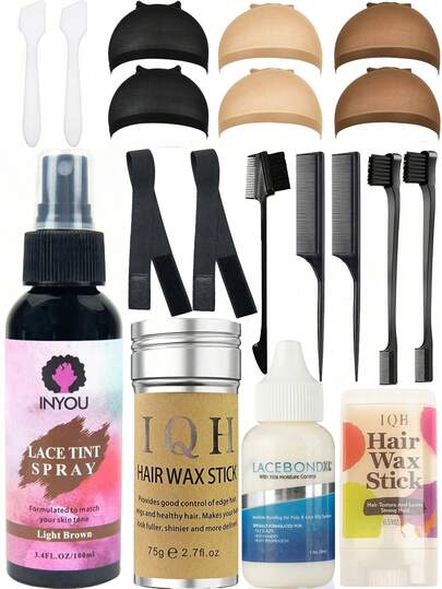 19 件发蜡套装,防水蕾丝假发胶(包括浅棕色蕾丝染色喷雾、75g IQH 发蜡棒、蕾丝胶、2 条松紧带、2 个发刷、2 个发梳、2 个白色勺子配件、1 个边缘修饰梳、3 种颜色假发帽各 2 个、15g 发蜡棒) - The choice is yours - 查看 17