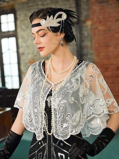 20 世纪 20 年代复古亮片披肩,女士串珠肩披肩,适合正式派对、婚礼、哈莱姆之夜万圣节 - 多色 - 查看 1