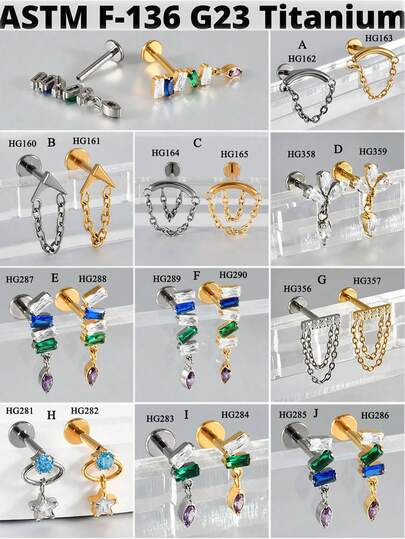 1 件 G23 钛金属耳钉彩虹色 CZ 吊坠链内螺纹垂饰唇钉软骨耳屏唇钉穿孔珠宝 - 如圖 - 查看 25