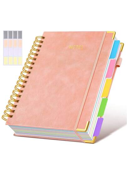 1 件精装螺旋笔记本日记本,带可拆卸隔板标签,300 页皮革 5 主题笔记本大学横格,8x10 大号 B5 笔记本,用于工作学校笔记记录,女士横格日记本,(粉色、紫色、黑色)学校用品,返校 - 彩色 - 查看 9