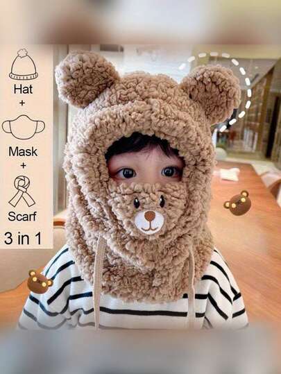 1PC One Three-In-One 毛绒帽子围巾卡通口罩双层针织帽 - 彩色 - 查看 1