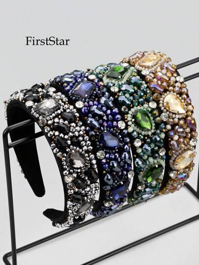 1 件装女士海军蓝绿色黑色水晶串珠巴洛克风格发带水钻手工发带适合选美发饰 - 彩色 - 查看 1
