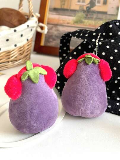 1件装 女士可爱毛绒钥匙扣 可爱创意戴耳机茄子毛绒钥匙扣 包包挂饰 汽车钥匙扣 室内装饰 柔软毛绒钥匙扣配件 小礼物 生日礼物 情侣礼物 活动纪念品 派对礼物 朋友礼物。